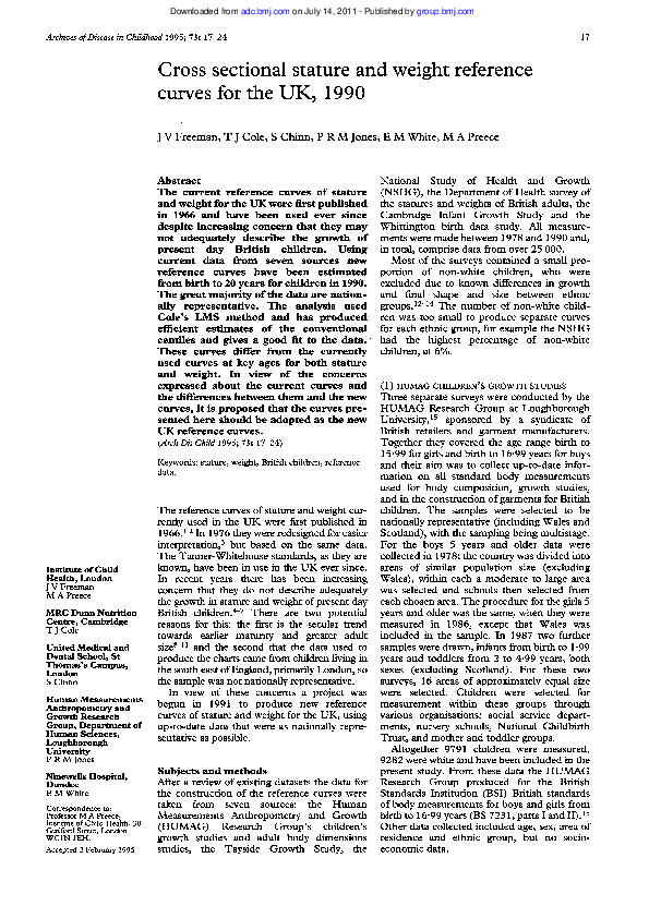 Pdf Cross Sectional Stature And Weight Reference Curves For The Uk 1990 Michael A Preece Academia Edu